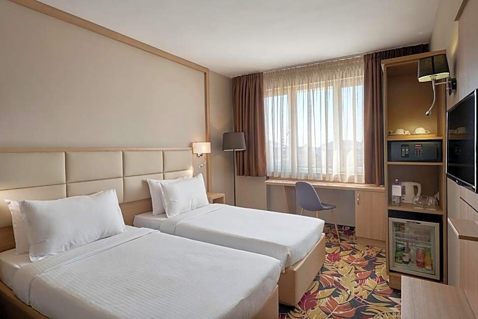 Offering free toiletries, this double room includes a private bathroom with a shower, a hairdryer and slippers. The air-conditioned double room offers a flat-screen TV with cable channels, a mini-bar, a wardrobe, a safe deposit box as well as city views. The unit offers 2 beds.